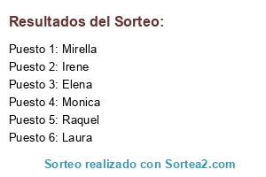 Lista de participantes: Mirella, Irene, Monica, Laura, Raquel, Elena.