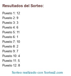 Lista de participantes: 1, 2, 3, 4, 5, 6, 7, 8, 9, 10, 11, 12.