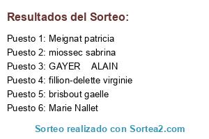 Lista de participantes: Lanthier dorothee, Aissaoui Sonia, ALLAIN DANIEL, amari claire, Anghel Marius, ANNE MARIE JOSUE, Annie Howard, ANSQUER Erwan, arnaudon frederic, BACQUART Anne, Barnava Stéphanie, BASSAGET Sylvie, Bedard damien, BELOQUI Martine, benkhetache salah, Benoit Landier, BERTRAND Edwige, BETREMIEUX Françoise, BLEUSE-ROVIRA Maria del Carmen, Blot Meriem, Bonnet Catherine, BOURGEOIS JEAN BENOIT, Breton Gilbert, Breton morgane, Brian David, brisbout gaelle, Bruniaux Marie-Michelle, Buzdugan Clara, CALOONE Catherine, carme pierre, CARRERE JEAN CLAUDE, chantal commere, Charlou Nicolas, CHAUVY Gérard, Cohen Patrick, COLLIN MARIE CLAUDE, corinne delourme, Cosquer Marianne, CREVET Anne-Sophie, Daniel jean pierre, Debieve maria, DEFRETIN Gauthier, Delaporte François, Delattre emilie, Demmerle celine, DENIS Christiane, DIEZ Julian, Di-Litta, Domenech jean Roch, duchene marie - aline, ecobichon jean francois, Elin Yannick, Eliot Veronique, ESPINASSE FRANCOISE, ESTEVEZ Claude, Fercoq Valentine, fillion simon, fillion-delette virginie, fleith dominique, FORICHON olivier, FRANCHOMME marie, frandeboeuf anthony, FRAUCIEL DOMINIQUE, frritsch michel, Fruchard JEAN, FURGEROT Anne, Galindo Xavier, Garbe Agnes, GARNIER JOELLE, GARNIER RAYMOND, GARULO Candy, GAUTTIER Pascal, GAYER ALAIN, gayer damien, gayer matthieu, GAYER sylvie, GHESQUIER Frederique, gilbert deck, GILSON bernard, gombert manuela, GONZALEZ Didier, GOURDON Regis, grandon gilbert, GRIL SYLVIE, GUIMONT Albanne, hallais fabrice, HANEZ SANDRINE, HECQUET Marie, henri dufrenot, HERVIOU Chantal, hugues marion, Jacquet Claire, JAKUBEC Marie-Christine, jankowski Geraldine, janosi andrea, JAUFFRIT SYLVIE, JEAN ROGER, joseph Maziji, jouin jean claude, Julien GUYOT, KEOGH MARINA, KOHLER MARTHE, Kouidri Kouchih, kremer julien, KUNTZ bernard, KUNTZ rodrigue, Labi pascal, LABY Clara, LADAM Jean Claude, LAGAE HALINA, lalanne marita, LAPEGUE MARCEL, Lartigau Christine, Lau Harrison, Laurent Marina, Le bris solange, Le Razavet Elodie, le strat elodie, Lecocq isabelle, leray jean michel, lescouarch yann, LETELLIER EMILE, LÉVI Pascal, Loïc MAHOT, lucie Bernier, LUDOVINO COSTA Dorian, Marcel Melina, Marie HECQUET, Marie Nallet, MAURICE VOLLMER, Mc Laughlin Dominique, Meignat patricia, MÉNAGE Mélanie, merienne johnny, Michael Michigan, Michelle MAINGAIN, miossec sabrina, Monia Morand, nadege boursin, NORET Jean-Yves, NORET Valérie, NOUVZL Marie-José, OCANA Florence, ONTANILLA GELARD, PANSU Bernard, PAQUE, PAQUEREAU Sophie, PARDO Francois, Pasquier Annabelle, Perrin Mehdy, Philippe Delaporte, pierre lindauer, pigot monique, playe, Poujade Veronique, pruvost, QUATREMER Sylvie, QUILLET ARNAUD, RAIMBPOURG, Razafindrakpto Didier, RENARD Jean-Claude, ribaille didier, Riboulet raphael, ROBLES Jérémie, ROYAN Guillaume, Ruesch Sandra, Ruiz Didier, ruiz Eva, Salaun jacques, Salvaterra Christian, SARRADO CHLOE, schmitt joseph, Sénéchal Jean Louis, sibler bernard, Siret gregory, SLODKOWSKI Sandra, Staerke, Andrea, TAILLANDIER GILLES, TAILLEZ jean-marie, TAN Herve, THOM Catherine, Thoris Charlène, TIRASKIS CONSTANTINOS, TOULOTTE Loic, TREMBLOY Philippe, twardak monique, VALENTIN jean claude, VETAULT Stéphane, villet laurent, Yury Chernyshov.