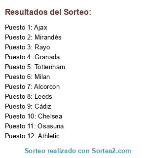 Lista de participantes: Granada, Chelsea, Leeds, Rayo, Alcorcon, Ajax, Athletic, Osasuna, Milan, Mirandés, Tottenham, Cádiz.