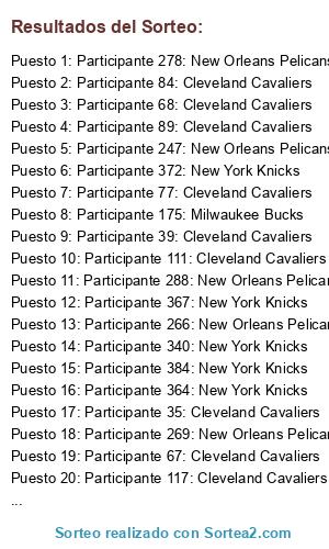 - Puesto 1: Participante 278: New Orleans Pelicans