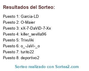 Lista de participantes: o_-JaVi-_o, Garcia-LD, xX-7-DaViD-7-Xx, Trivuliki, deportivo2, O-Maier, killer_sevilla96, turito22.