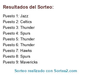 Lista de participantes: Bucks(6), Celtics(7), Grizzlies(3), Hawks(4), Jazz(5), Mavericks(5), Spurs(7), Thunder(10), Timberwolves(5).