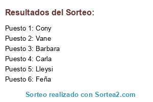 Lista de participantes: Cony, Barbara(2 participaciones), Lleysi(3 participaciones), Feña(4 participaciones), Carla(5 participaciones), Vane(6 participaciones).