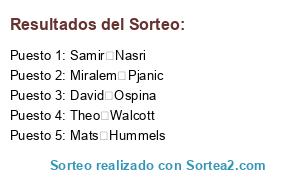 Lista de participantes: Kiko Casilla, David Ospina, Jack Wilshere, Samir Nasri, Javi Martinez, Miralem Pjanic, Claudio Marchisio, Domenico Criscito, Benoit Tremoulinas, Daniel Carvajal, Theo Walcott, Andrea Ranocchia, Mats Hummels, Marquinhos, Thomas Vermaelen, Luis Suarez, Romelu Lukaku, Radamel Falcao.