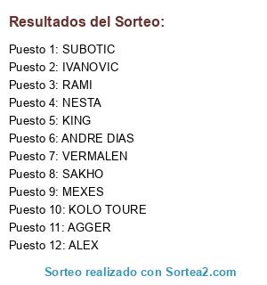 Lista de participantes: NESTA, AGGER, IVANOVIC, VERMALEN, ALEX, RAMI, KING, KOLO TOURE, SAKHO, SUBOTIC, ANDRE DIAS, MEXES.