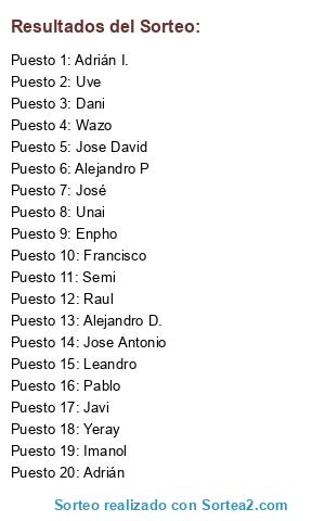 Lista de participantes: Alejandro D., Imanol, Alejandro P, Pablo, José, Jose David, Unai, Yeray, Adrián, Semi, Leandro, Enpho, Javi, Francisco, Raul, Adrián I., Jose Antonio, Wazo, Uve, Dani.