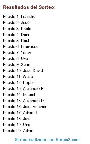 Lista de participantes: Alejandro D., Imanol, Alejandro P, Pablo, José, Jose David, Unai, Yeray, Adrián, Semi, Leandro, Enpho, Javi, Francisco, Raul, Adrián I., Jose Antonio, Wazo, Uve, Dani.