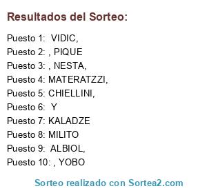 Lista de participantes: CHIELLINI,, VIDIC, , CARVALHO, , MILITO, , YOBO, , PIQUE, , NESTA, , MATERATZZI,, ALBIOL,, Y , KALADZE.