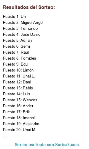 Resultados del sorteo:
