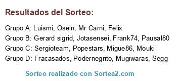 Lista de participantes: JUANY TÁCTICS GENK, KRAIT INTER MILÁN, ER POLLITO 10 BVB, ZEULITO30 FC BARCELONA, JORDI25 BAYER LEVERKUSEN, MAKAROOV69 GREMIO, CANELITA10 CORINTHIANS, BUKRON PS PSV.