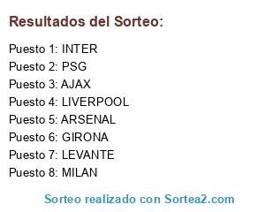 Lista de participantes: GIRONA, LIVERPOOL, MILAN, ARSENAL, AJAX, PSG, LEVANTE, INTER.