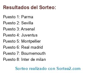 Lista de participantes: Parma, Arsenal, Sevilla, Juventus, Inter de milan, Bournemouth, Montpellier, Real madrid.
