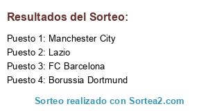 Lista de participantes: FC Barcelona, Borussia Dortmund, Manchester City, Lazio.