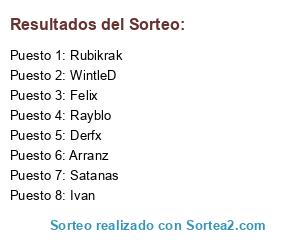 Lista de participantes: Rubikrak, WintleD, Arranz, Satanas, Felix, Ivan, Rayblo, Derfx.