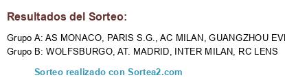 Lista de participantes: AT. MADRID, PARIS S.G., WOLFSBURGO, INTER MILAN, AS MONACO, RC LENS, GUANGZHOU EVERGRANDE, AC MILAN.