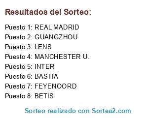 Lista de participantes: MILAN, BETIS, LENS, BASTIA, GUANGZHOU, MONACO, JUVENTUS, SEVILLA.