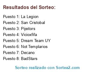 Lista de participantes: BadStars, Pijeitors, Not Templarios, Vicioxfifa, Dream Team UY, Decano, La Legion, San Cristobal.