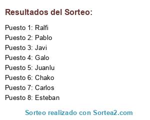 Lista de participantes: Carlos, Chako, Esteban, Galo, Javi, Juanlu, Pablo, Ralfi.