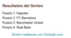 Lista de participantes: FC Barcelona, Bayern Munich, Arsenal, Real Sociedad, Napoles, Inter de Milán, Tottenham, Olympique Marsella, Real Betis, Chelsea, Manchester United, Real Madrid.