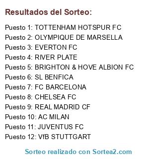 Lista de participantes: JUVENTUS FC, SL BENFICA, AC MILAN, OLYMPIQUE DE MARSELLA, CHELSEA FC, RIVER PLATE, FC BARCELONA, VfB STUTTGART, REAL MADRID CF, BRIGHTON & HOVE ALBION FC, EVERTON FC, TOTTENHAM HOTSPUR FC.