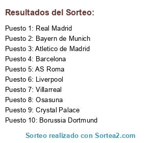 Resultados del sorteo: