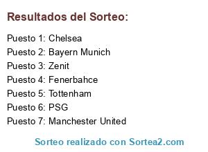 Lista de participantes: Manchester United, Tottenham, Chelsea, PSG, Fenerbahce, Bayern Munich, Zenit.