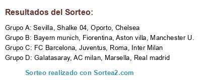 Lista de participantes: Marsella, Real madrid, Oporto, Sevilla, Fiorentina, Roma, Aston villa, Juventus, Galatasaray, Bayern munich, Chelsea, Inter Milan, Shalke 04, AC milan, FC Barcelona, Manchester U..