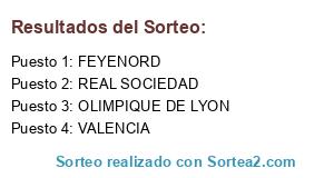 Lista de participantes: FEYENORD, VALENCIA, OLIMPIQUE DE LYON, REAL SOCIEDAD.