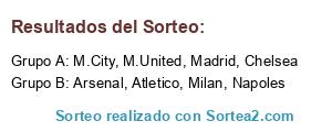 Lista de participantes: Milan, Chelsea, M.City, M.United, Madrid, Atletico, Arsenal, Napoles.