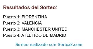 Lista de participantes: VALENCIA, ATLETICO DE MADRID, FIORENTINA, MANCHESTER UNITED.