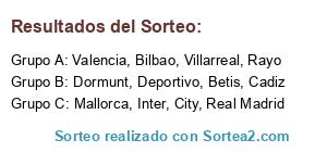 Lista de participantes: Real Madrid, Valencia, City, Dormunt, Inter, Bilbao, Rayo, Deportivo, Mallorca, Betis, Villarreal, Cadiz.