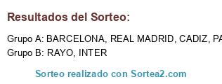 Lista de participantes: RAYO, REAL MADRID, INTER, BARCELONA, CADIZ, PALERMO.