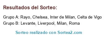 Lista de participantes: Liverpool, Rayo, Celta de Vigo, Levante, Milan, Roma, Chelsea, Inter de Milan.