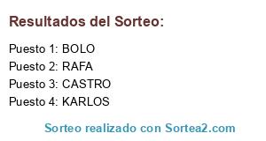 Lista de participantes: RAFA, BOLO, CASTRO, KARLOS.