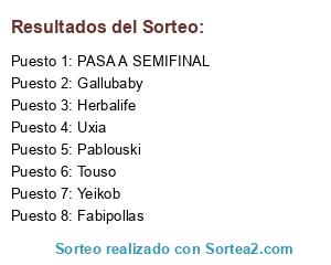 Lista de participantes: Touso, Fabipollas, Uxia, Gallubaby, Pablouski, Herbalife, Yeikob, PASA A SEMIFINAL.