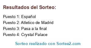 Lista de participantes: Crystal Palace, Atletico de Madrid, Español, Pasa a la final.