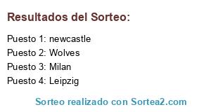 Lista de participantes: newcastle, Wolves, Leipzig, Milan.
