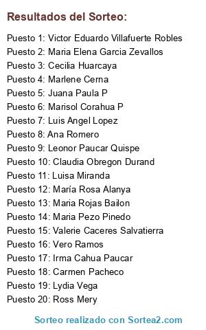 Lista de participantes: Aldo Beraun Torres, Alfonso Honorio, Ana Maria Prado, Ana Romero, Ana Rosita Mach, Angel Sivirichi, Bernardita Salvatierra, Cajitas Jab, Candy Arrieta Huamani, Carlita Obregon Durand, Carlos Alberto Miranda lopez, Carlos Fernandez, Carlos Lonardo, Carmen Leyva Fernandez, Carmen Oh, Carmen Pacheco, Cecilia Huarcaya, Cesar Caceres Rodriguez, Chg Lindsey, Claudia Obregon Durand, Corina Edith Dolores, Cris Heredia, Cynthia Medina Fasanando, Daniel Palomino, David Brocos Sanabria, Denisse Villaorduña, Diego Andres Ortiz, Doris Betty Palomino Huaman, Doris Leyva Fernandez, Doris Sulcaray Rios, Edinson Ramirez Espinoza, Eli Azu, Eli Contreras C, Elizabeth Ampudia, Elsa Sandra Alejos Jara, Emi Siviriche, Emilio Bajalque Huaccan, Evelyn Mendez, Felicita León, Francisca Rojas Baylon, Frank Anderson Mendez Albornoz, Gabriel Alarcon, Geraldine Ramirez, Giovanny Alburqueque, Gloria Marina, Hipolito Chambilla Nina, Iris Ravines Diaz, Irma Cahua Paucar, Javier Montero Matos, Johanna Cirineo, Jose Duran T, Josselyn Loloy, Joyce Otoya, Juan DelaCruz, Juana Paula P, Judina Heredia, July Elias, Junior Zapata Heredia, Karen Guisella Cruz Diaz, Karla Corahua, Laura Heredia Ampudia, Leonor Paucar Quispe, Lila Cortez, Lila Elena Saavedra Pezo, Lissette Salazar, Luciano Rodriguez Melgarejo, Luis Angel Lopez, Luis Rojas Baylon, Luisa Jesus, Luisa Miranda, Lydia Vega, Manuel Rojas Gálvez, Margot Mendoza Benites, Maria Elena Garcia Zevallos, Maria Jesus, Maria Pezo Pinedo, Maria Rojas Bailon, Mario Heredia, Marisol Corahua P, Maritza Lila Albornoz Jimenez, Marlene Cerna, María Rosa Alanya, Melisa Rodriguez, Milly Pardo, Nadia Rea Dionicio, Nancy Quispe, Nell Ricardo Cuba Alejos, Pamela Julca, Peter Chavez Alarcon, Pool Conisilla Cárdenas, Renato Ponte, Ricardo Humberto Cuba Mayor, Rosita Bocanegra Muñante, Rosmary A Cotrina Alvarado, Ross Mery, Susana Samaniego, Valerie Caceres Salvatierra, Vanessa Gutierrez Paz, Vanessa Jenny Saavedra, Vero Ramos, Victor Eduardo Villafuerte Robles, Zarela Aguilar Rodriguez.