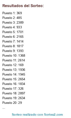 Este sorteo ha sido certificado por Sortea2. Sortea2 garantiza que: