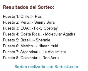 Lista de participantes: Australia - Katyuska, Japón - Shiizuku, Japón - Honey Bee Mai, Japón - Jigoku Yuugi, SurCorea - Tasha, SurCorea - Tomiaaa, Taiwan - HIKO, Taiwan - Neneko.