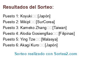 Lista de participantes: Alodia Gosiengfiao [Filipinas], Koyuki [Japón], Akagi Kuro [Japón], Ying Tze [Malasya], Mikipl [SurCorea], Kameko Zhang [Taiwan].