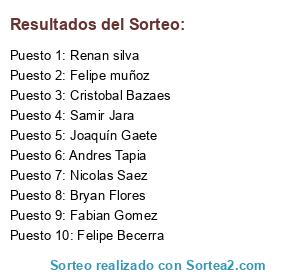 Lista de participantes: Cristobal Bazaes, Fabian Gomez, Andres Tapia, Felipe Becerra, Samir Jara, Felipe muñoz, Nicolas Saez, Joaquín Gaete, Bryan Flores, Renan silva.