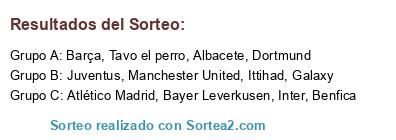 Lista de participantes: Ittihad, Juventus, Inter, Albacete, Atlético Madrid, Tavo el perro, Manchester United, Bayer Leverkusen, Benfica, Barça, Galaxy, Dortmund.