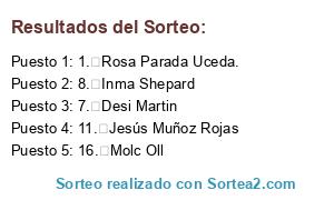 Lista de participantes: Manuel Fernández Rubio, David González Fraile, Sofía Espinosa Gavilán, Santi Prado, Rosa Parada Uceda, Desi Martin, Mercedes Sánchez, Molc Oll, Javier de la Ossa, Pili Rojo Espínola, Isidoro Albarreal Delgado, Jesús Cortés, José Robles, Alex Parejo Martínez, Richard Jcm, Mª Carmen Arcos Viveros, Inma Shepard, Carmen Gavilán Blanco, Belén Nortes Piñol, Beatriz CB, Conchi Mafer, Inma Valencia Ureña, Alejandro González Pallares, Manuel Quevedo, Josema Cano, Jesús Muñoz Rojas, Ana Lázaro, David Márquez Rodríguez, Adri Cruz.