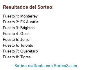 Lista de participantes: Gent, FK Austria, Tigres, Toronto, Querétaro, Brighton, Junior, Monterrey.
