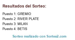 Lista de participantes: BETIS, MILAN, GREMIO, RIVER PLATE.