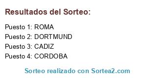 Lista de participantes: ROMA, DORTMUND, CORDOBA, CADIZ.