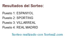 Lista de participantes: SPORTING, VILLARREAL, ESPANYOL, REAL MADRID.