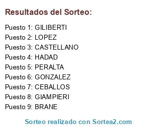 Lista de participantes: CEBALLOS, CASTELLANO, BRANE, PERALTA, GONZALEZ, HADAD, LOPEZ, GILIBERTI, GIAMPIERI.
